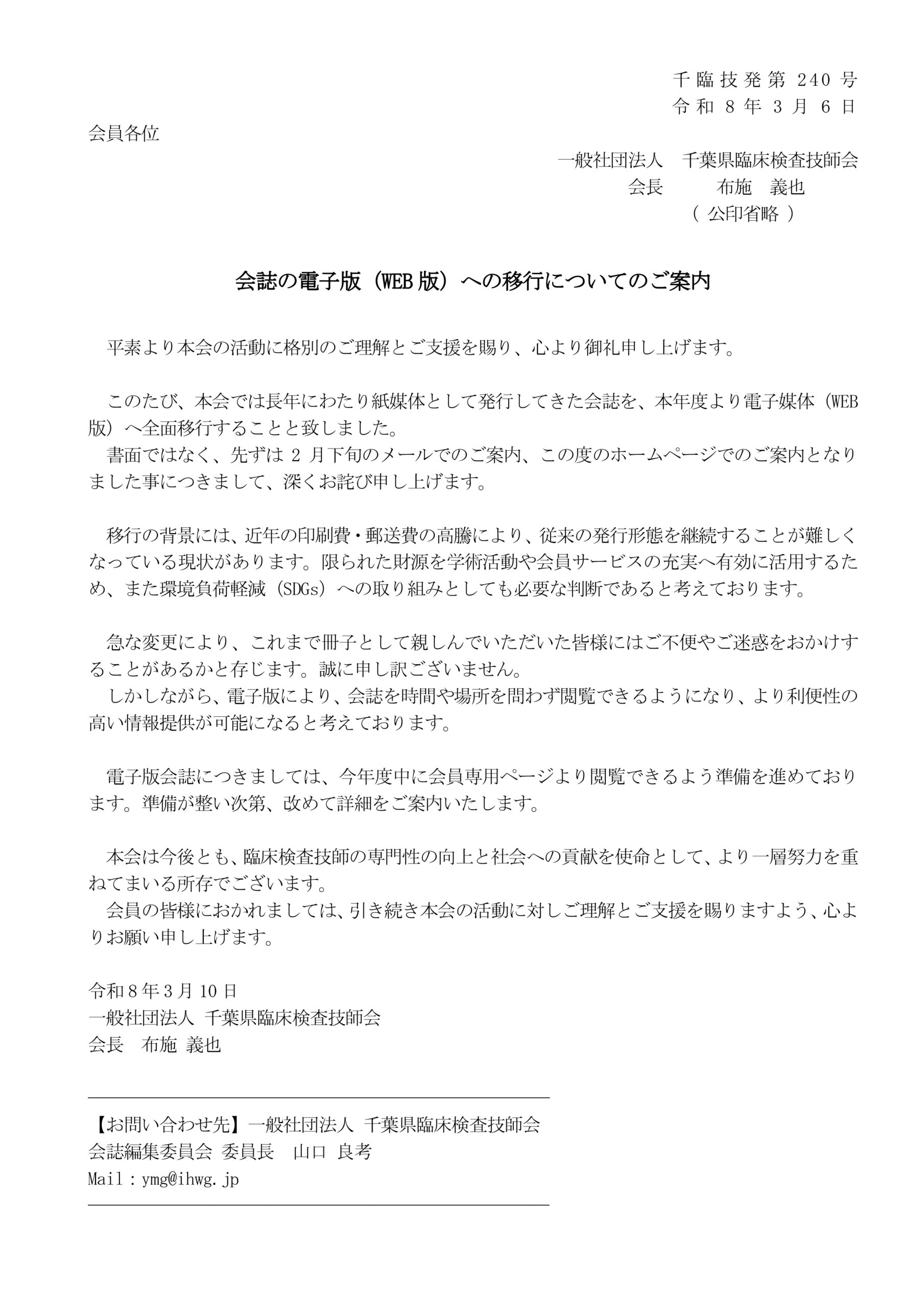 会誌の電子版(WEB版)への移行についてのご案内