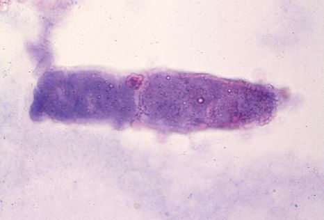 上の写真の脂肪円柱をステルンハイマー変法染色(同一円柱)