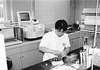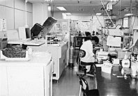 | 病院の基本理念である『思いやりのある医療』『質の高い医療』『チームワークのよい医療』を遂行するために、当検査部では、外来患者の血液検査の約70%、尿検査のほぼ100%の診察前至急検査に対応し、生理検査部門検査も診察に合わせて検査が出来るよう予約の調整をして、検査結果だけを聞きに来るという日を極力なくし、二度足を踏ませないよう患者サービスに心がけているそうです。 最後になりましたが、大変お忙しい中、長い時間にわたり笑顔でお世話して頂いた森重彦技師長はじめ、スタッフの方々にお礼を申し上げます。 |